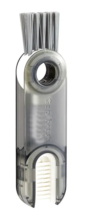 Compact 3-in-1 cleaning tool set designed for narrow spaces and hard-to-reach areas. Features a spiral brush for grooves, beveled corner brush for tight spots, and removable sponge attachment.
